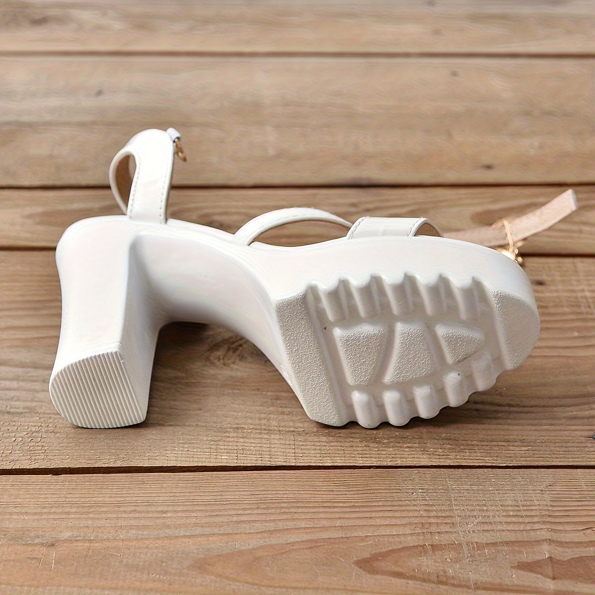 Step into elevated style with these ultra-high platform heels, designed for a bold yet minimalist look. Crafted from durable man-made materials, these heels feature an open toe and secure ankle-strap buckle closure for both comfort and confidence. The sleek solid-color design makes them versatile enough to pair with any outfit, while the PU sole provides stability for all-day or all-night wear.