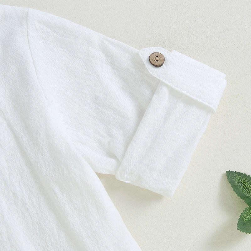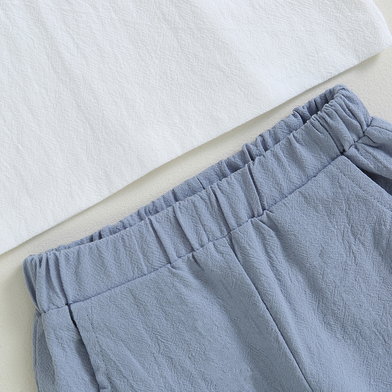 Kids Boys Summer Outfits Solid Color Buttons Short Sleeve Shirts and Elastic Waist Long Pants 2Pcs Children's Clothing Set
