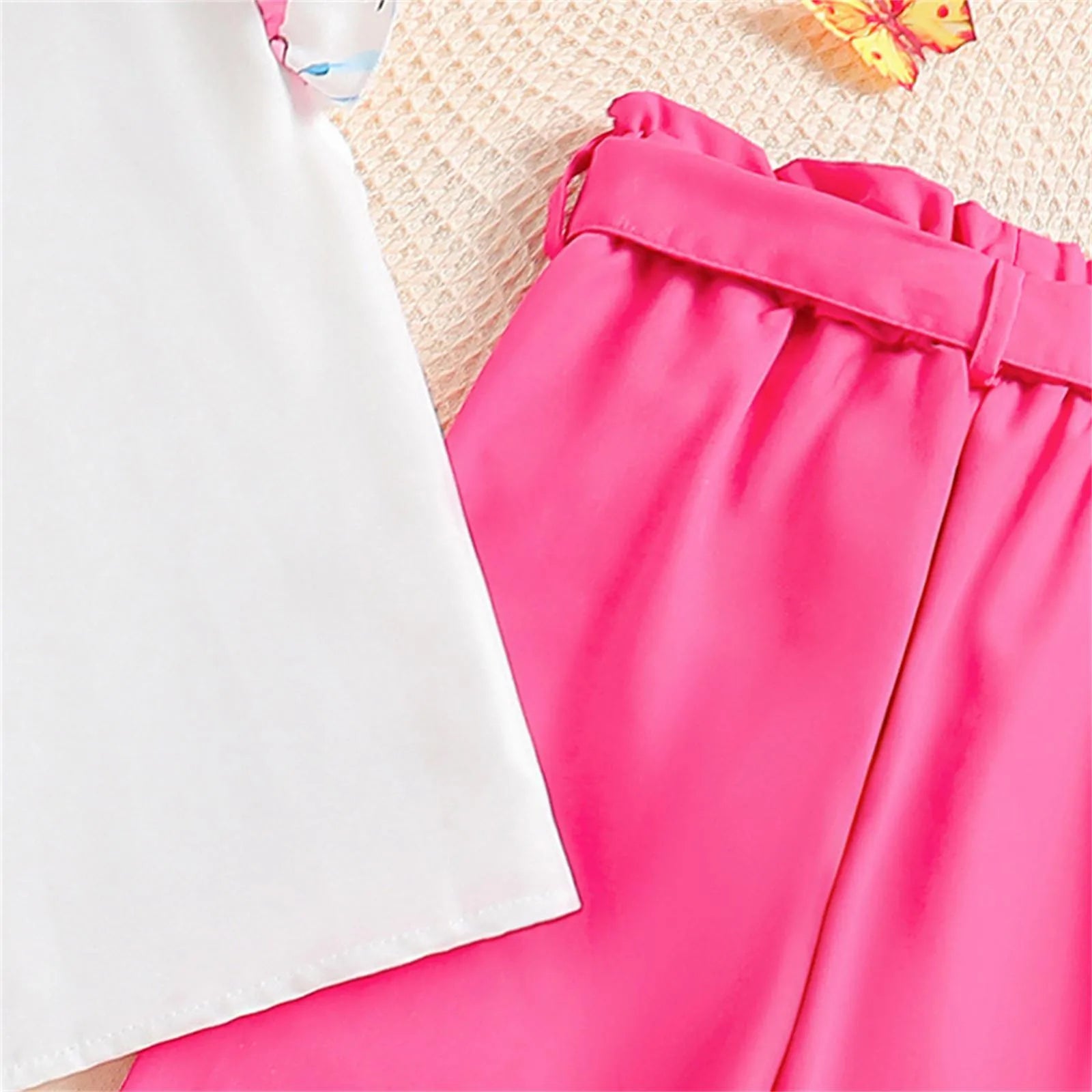 2024 Summer Girls' Clothing New Children's Clothing For 8 12 Years Old Flying Sleeve Top And Pants Suit