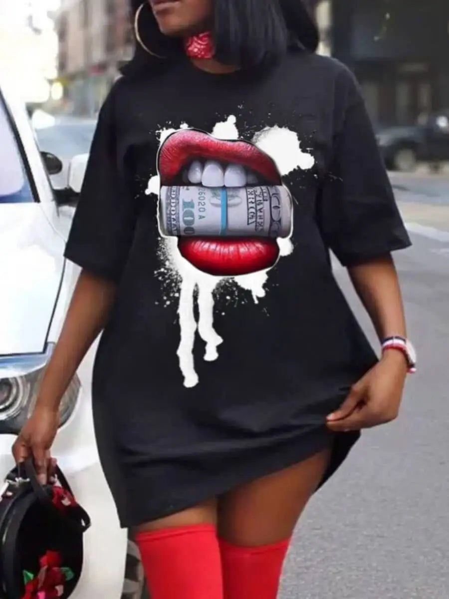 Effortlessly stylish, this loose-fit, short-sleeve frock features delicate appliqué details and a subtle 3D print design. Crafted from lightweight polyester with a slight stretch, it offers comfort and freedom of movement. Designed for all body types, it comes in a wide range of sizes from S to 5XL, making it perfect for spring and summer days.