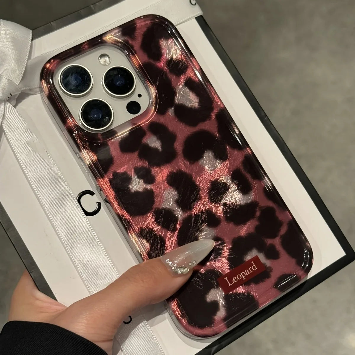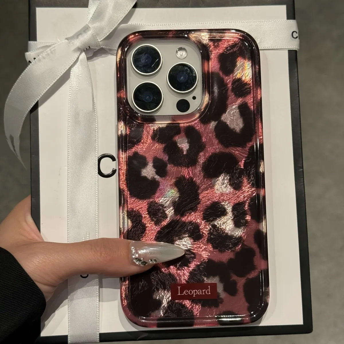 Stylish Laser Leopard Print Phone Case for iPhone 15 Pro Max Cases iPhone 11 12 13 14 16 XS X XR 7 8 16 Plus SE 2022 Soft Cover